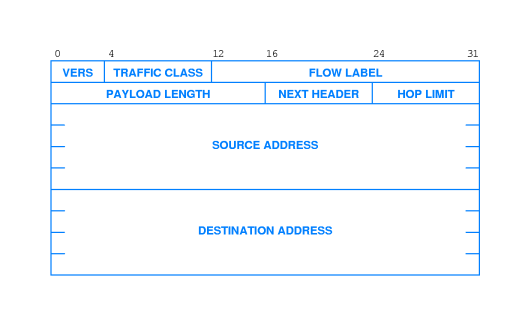 - NEXT HEADER: 8-bit; indicates what kind of header