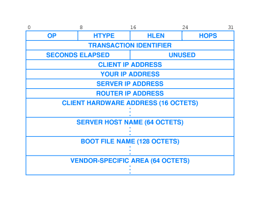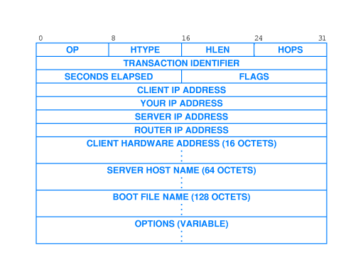 (255.255.255.255) in the request packet and uses all zero's (0.0.0.0